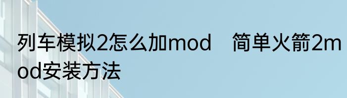 列车模拟2怎么加mod 简单火箭2mod安装方法