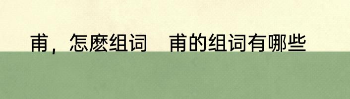 甫,怎麽组词 甫的组词有哪些