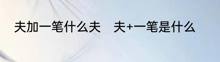 夫加一笔什么夫 夫+一笔是什么