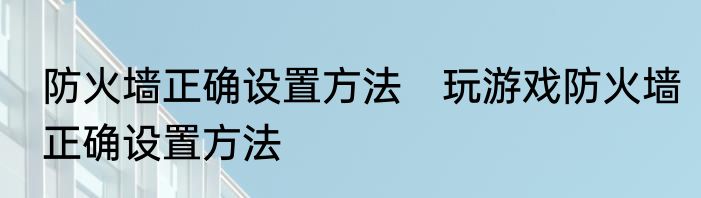 防火墙正确设置方法 玩游戏防火墙正确设置方法