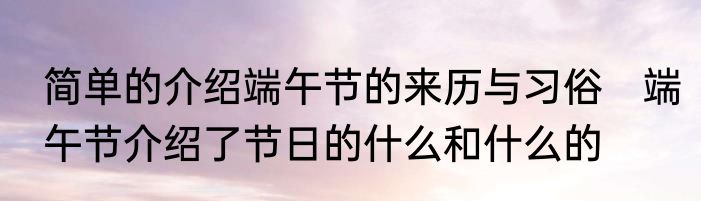 简单的介绍端午节的来历与习俗 端午节介绍了节日的什么和什么的
