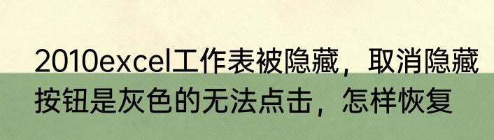 2010excel工作表被隐藏,取消隐藏按钮是灰色的无法点击,怎样恢复?