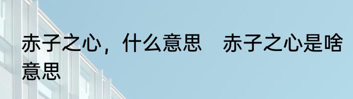 赤子之心是啥意思?