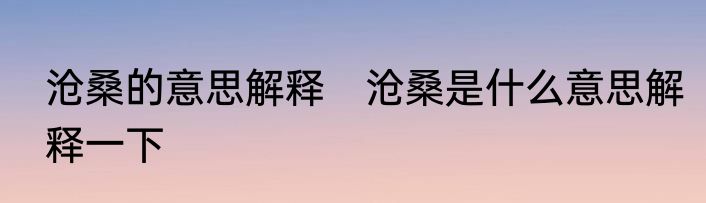 沧桑,汉语词语,拼音为cāngsāng,大海变成了种桑树的田地,种桑树的田,变成了大海。