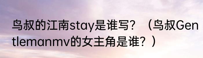 鸟叔的江南stay是谁写?(鸟叔Gentlemanmv的女主角是谁?)