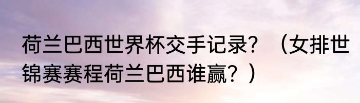 提及荷兰巴西世界杯交手记录?(女排世锦赛赛程荷兰巴西谁赢?)的相关内容,许多人不太了解,来看看小川的介绍吧!