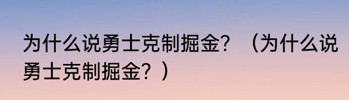 为什么说勇士克制掘金?(为什么说勇士克制掘金?)