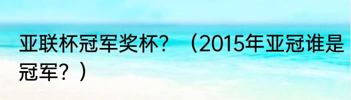 提及亚联杯冠军奖杯?(2015年亚冠谁是冠军?)的相关内容,许多人不太了解,来看看小猛的介绍吧!