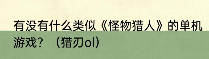 有没有什么类似《怪物猎人》的单机游戏?(猎刃ol)