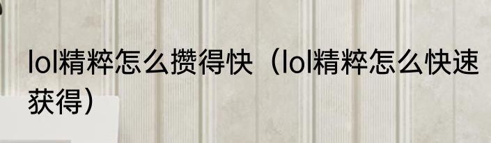 lol精粹怎么攒得快(lol精粹怎么快速获得)