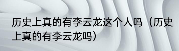 历史上真的有李云龙这个人吗(历史上真的有李云龙吗)