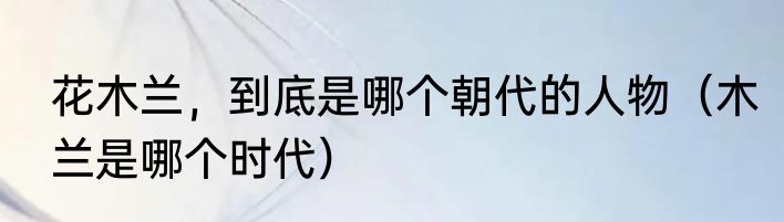 花木兰,到底是哪个朝代的人物(木兰是哪个时代)