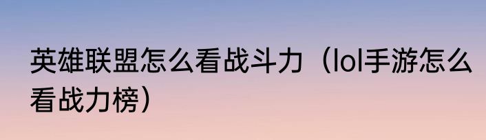 英雄联盟怎么看战斗力(lol手游怎么看战力榜)