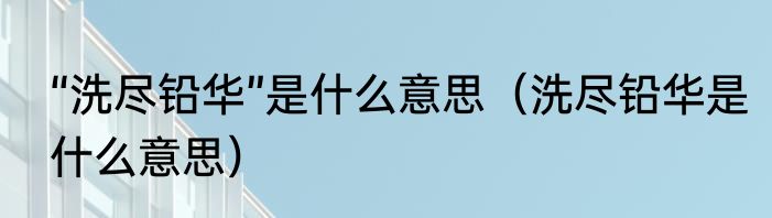 “洗尽铅华”是什么意思(洗尽铅华是什么意思)