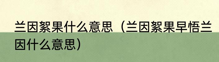 所以“兰因”经常被用来比喻像兰花一样美好的前因“兰因”是佛教用语,讲究因果,讲究参禅,讲究了悟,这个词的意思可以说是参透因果。