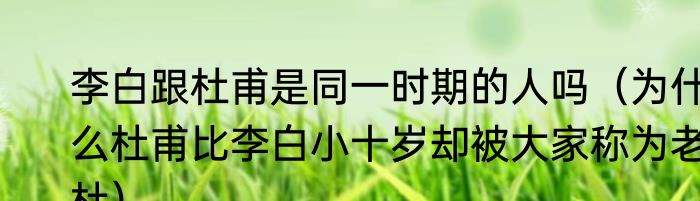 为什么杜甫比李白小十岁却被大家称为老杜?