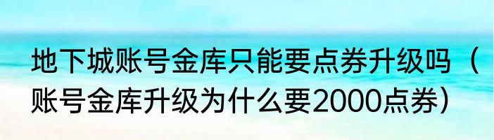 地下城账号金库只能要点券升级吗(账号金库升级为什么要2000点券)