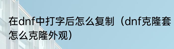 在dnf中打字后怎么复制(dnf克隆套怎么克隆外观)