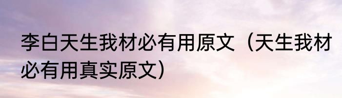 李白天生我材必有用原文(天生我材必有用真实原文)