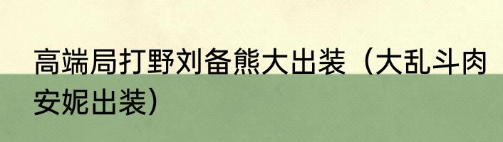 高端局打野刘备熊大出装(大乱斗肉安妮出装)