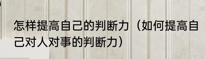 怎样提高自己的判断力(如何提高自己对人对事的判断力)