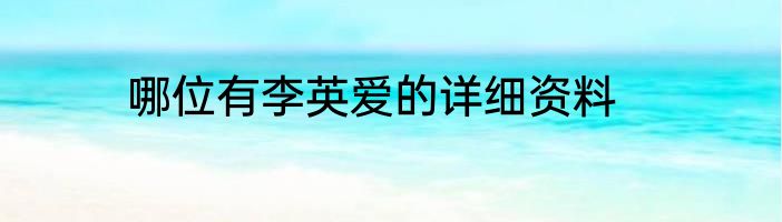 哪位有李英爱的详细资料?