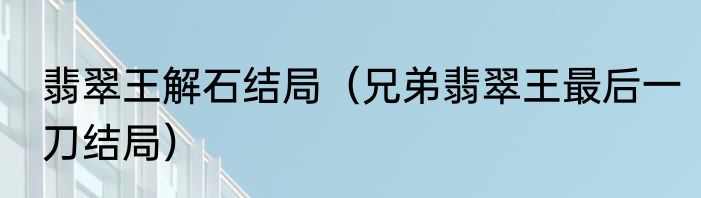 翡翠王解石结局(兄弟翡翠王最后一刀结局)