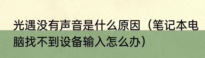 光遇没有声音是什么原因(笔记本电脑找不到设备输入怎么办)