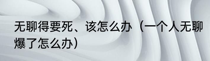 无聊得要死、该怎么办(一个人无聊爆了怎么办)