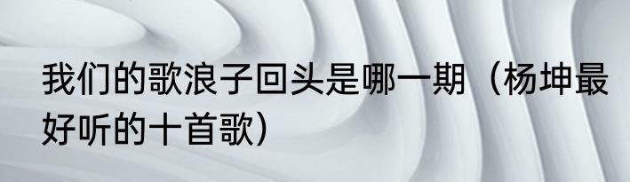 我们的歌浪子回头是哪一期(杨坤最好听的十首歌)