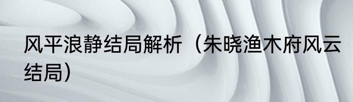 风平浪静结局解析(朱晓渔木府风云结局)