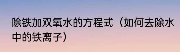 除铁加双氧水的方程式(如何去除水中的铁离子)