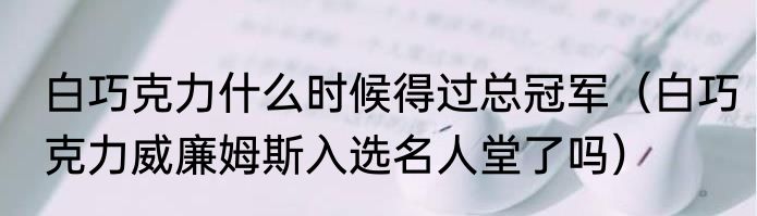 白巧克力什么时候得过总冠军(白巧克力威廉姆斯入选名人堂了吗)