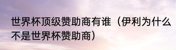 世界杯顶级赞助商有谁(伊利为什么不是世界杯赞助商)