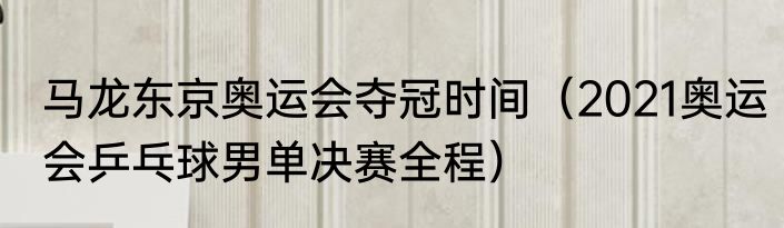 马龙东京奥运会夺冠时间(2021奥运会乒乓球男单决赛全程)