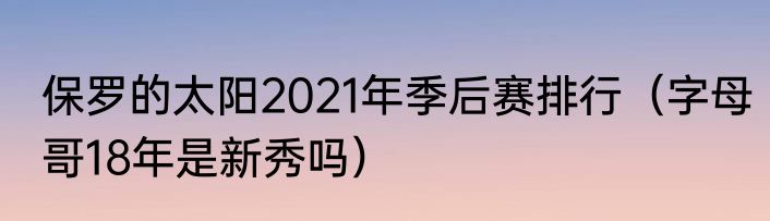 保罗的太阳2021年季后赛排行(字母哥18年是新秀吗)