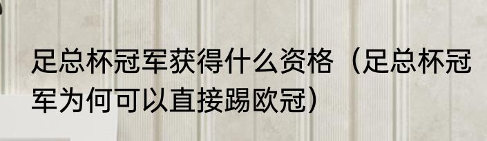 足总杯冠军获得什么资格(足总杯冠军为何可以直接踢欧冠)