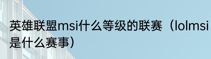 英雄联盟msi什么等级的联赛(lolmsi是什么赛事)
