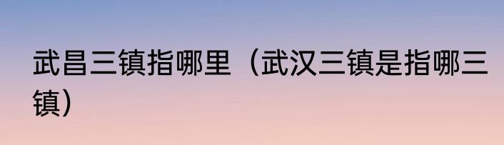 武昌三镇指哪里(武汉三镇是指哪三镇)