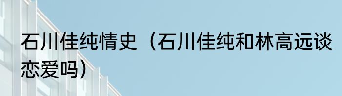 石川佳纯情史(石川佳纯和林高远谈恋爱吗)