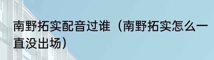 南野拓实配音过谁(南野拓实怎么一直没出场)