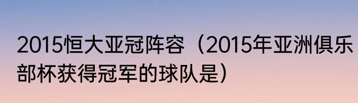 2015恒大亚冠阵容(2015年亚洲俱乐部杯获得冠军的球队是)