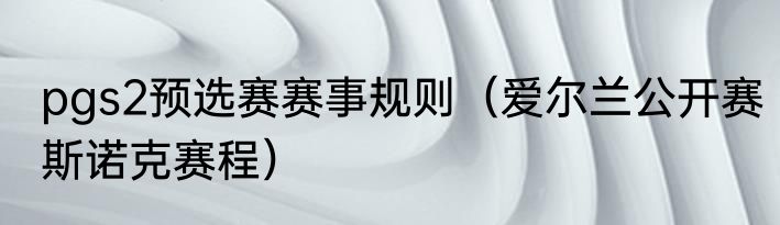 pgs2预选赛赛事规则(爱尔兰公开赛斯诺克赛程)