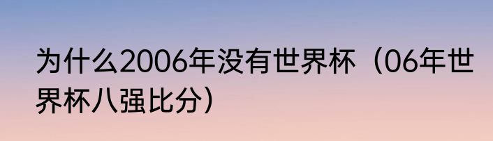 为什么2006年没有世界杯(06年世界杯八强比分)