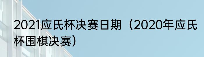2021应氏杯决赛日期(2020年应氏杯围棋决赛)