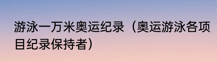 游泳一万米奥运纪录(奥运游泳各项目纪录保持者)