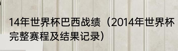 14年世界杯巴西战绩(2014年世界杯完整赛程及结果记录)