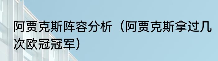 阿贾克斯阵容分析(阿贾克斯拿过几次欧冠冠军)
