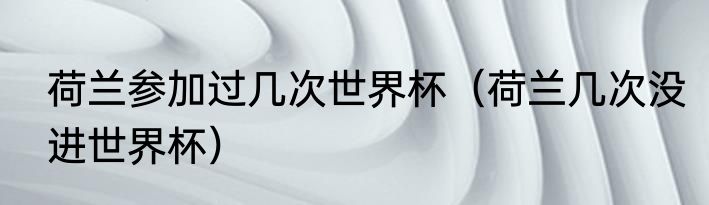 荷兰参加过几次世界杯(荷兰几次没进世界杯)