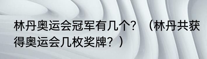 林丹奥运会冠军有几个?